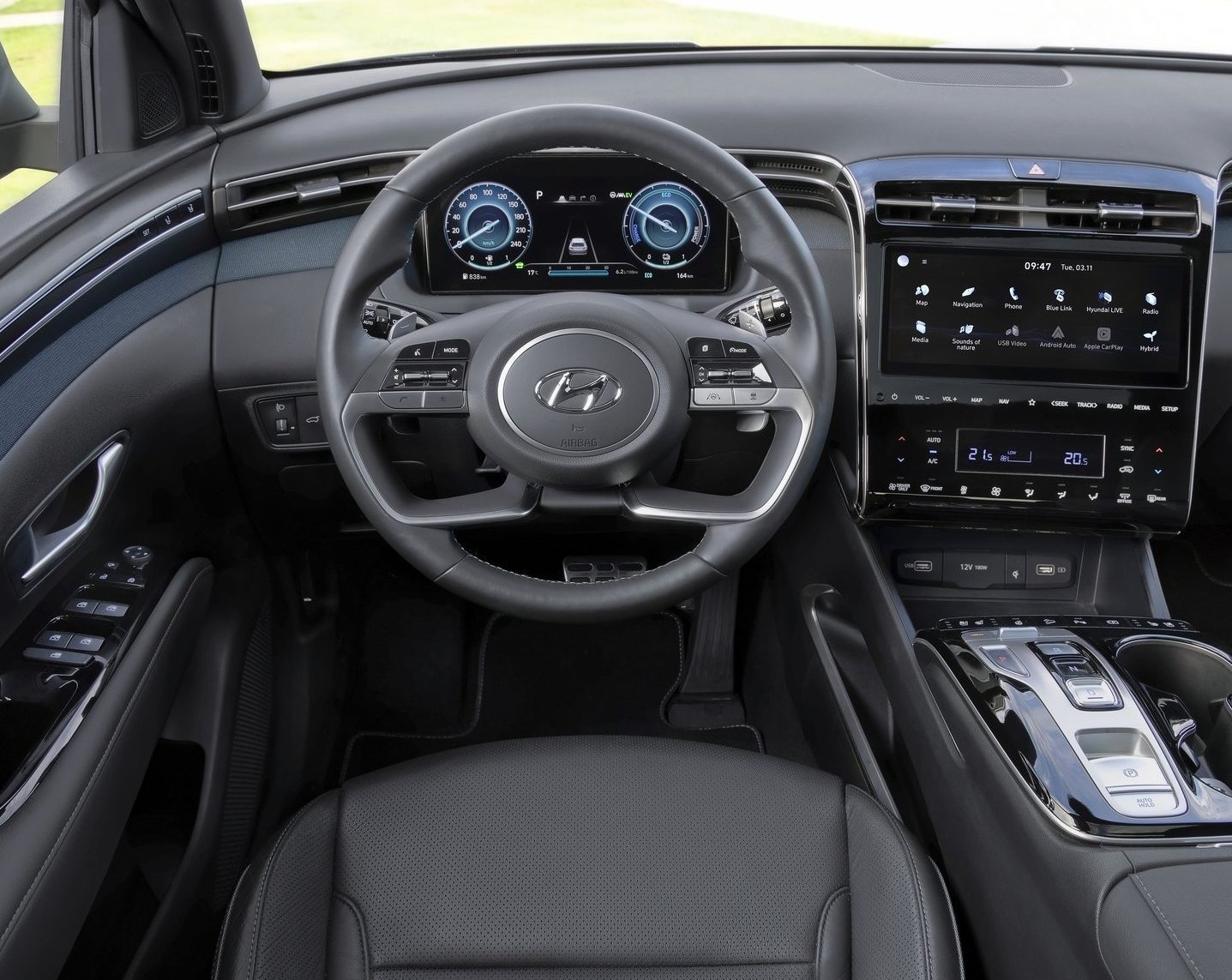 Динамичен геометриски облик, остри агли и први на светот параметарски сокриени светла се комбинација која новиот Hyundai Tucson го прави импресивна појава. Со димензии 4.500х1.865х1.685 mm и меѓуоскино растојание од 2.680 mm гарантира пространост и комфор во возењето. Tucson нуди најширок опсег на електрични погонски склопови во сегментот на компактни SUV возила. Започнувајќи од 48-волтниот благ хибриден систем кој го поддржува моторот со внатрешно согорување со дополнителен вртежен момент при забрзување и тргнување. Хибридот со новиот 1,6 литарски T-GDi Smartstream бензински мотор и електромоторот има комбинирана вкупна моќност од 230 KS.