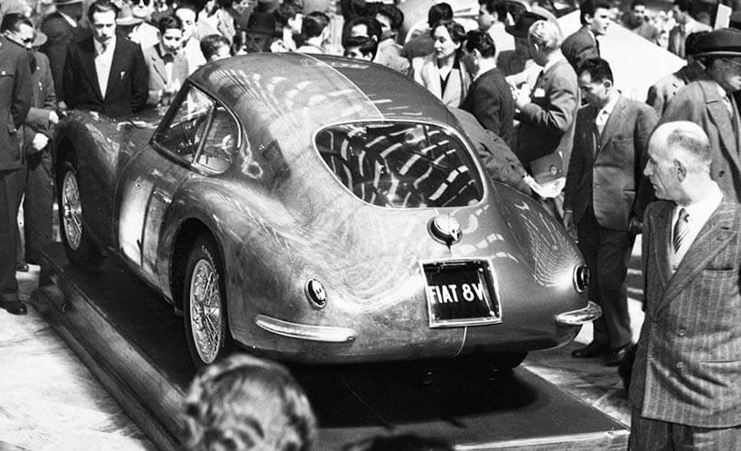 » На салонот во Женева пред 70 години Fiat предизвика сензација со претставувањето на моделот 8V, што требаше да означува дека има V8 мотор. „Збрката“ со името дојде оттаму што Италијаните во тоа време сметаа дека Ford ја има регистрирано ознаката V8. Дволитарскиот мотор имаше агол меѓу цилиндрите од 70° и развиваше 105 коњски сили со кои постигнуваше максимална брзина од 190 километри на час. Ова спортското купе со агресивен стајлинг немаше комерцијален успех – за две години беа направени само 114 примероци, но затоа стекна доста добра слава на трките. Повеќето произведени примероци излегоа од разни италијански каросерници – Zagato, Ghia, Vignale, Balbo, Bertone, Pininfarina…
