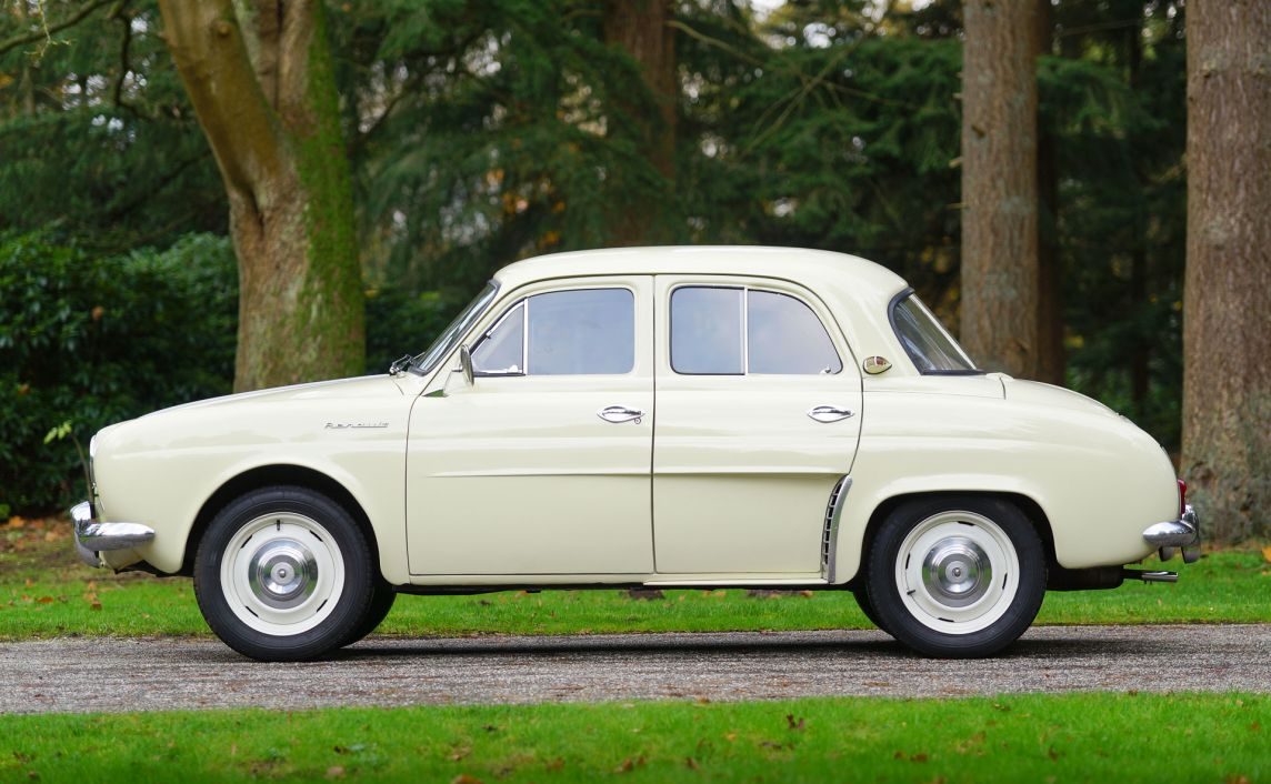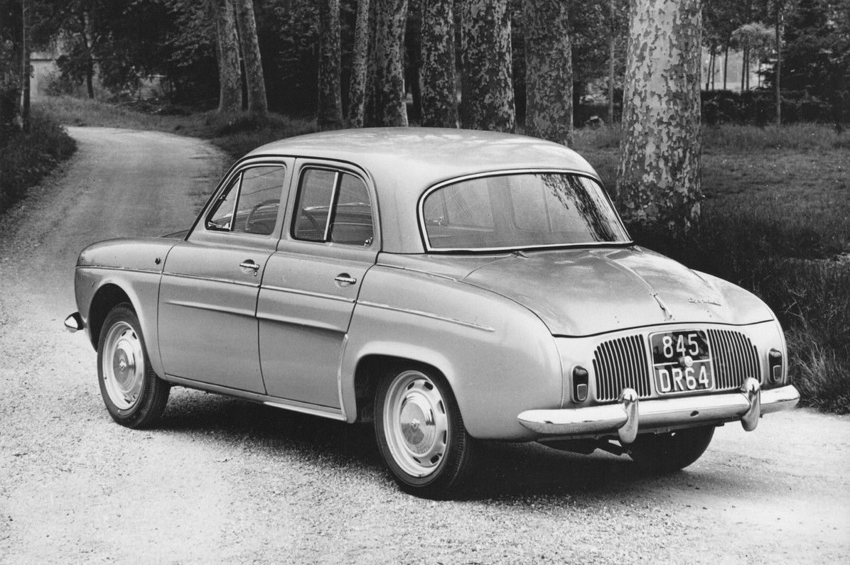 » Renault после втората светска воја беше во немилост на француската држава, која откако го национализираше сакаше да го претвори во производител на камиони. На тоа се противеше Пјер Лефошо, наследникот на основачот на компанијата Луи Рено кој откако беше обвинет дека соработувал со фашистичкиот режим почина под неразјаснети околности во затвор пред да му се суди. За да се спаси компанијата многу важно беше таа да има успешни модели, чија гама во 1949 година кога започна развојот на Dauphine се состоеше само од малиот 4CV и предвоениот Juvaquatre. Тогаш за лансирање се подготвуваа и караванскиот Colorale и репрезентативниот Fregate, но тие слабо се продаваа. Затоа сите надежи се полагаа на новиот седан кој требаше да го наследи (но не и замени) 4CV.