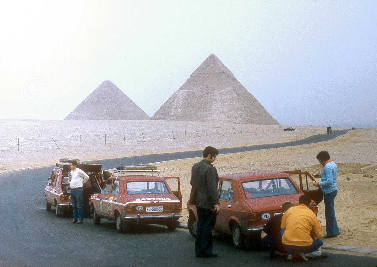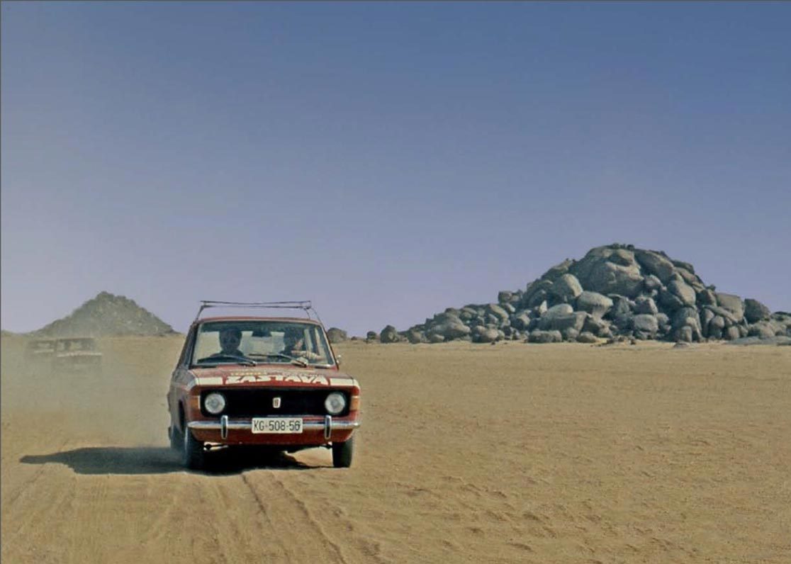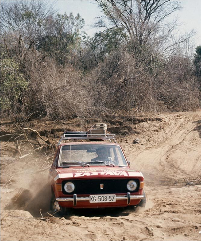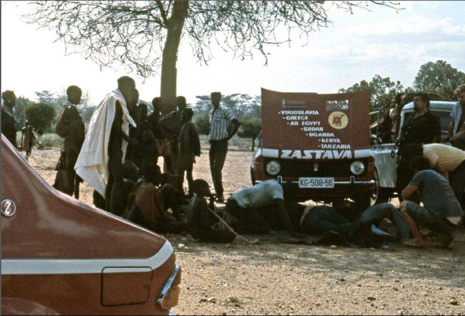 Експедицијата долга 11.000 километри на својот пат низ Грција, Египет, Судан, Кенија и Уганда до Танзанија тргува на во февруари 1975 година. Југословенскиот пасош ѝ ги отвора сите врати, а механиката на новиот автомобил од Крагуевац ги совладува сите препреки. Дефектите се бројат на прсти и двајцата механичари се возат со останатите 9 члена на експедицијата како кралеви, практично без работа – сé се сведува на рутинска контрола и превентивни зафати. Покрај возењето по каменливите патишта каде страдаат пневматиците, најголемите проблеми се јавуваат на пустинскиот песок каде возилата за да не заглават мора да поминуваат преку него со брзина од 120 километри на час, и тоа на пеколни температури.