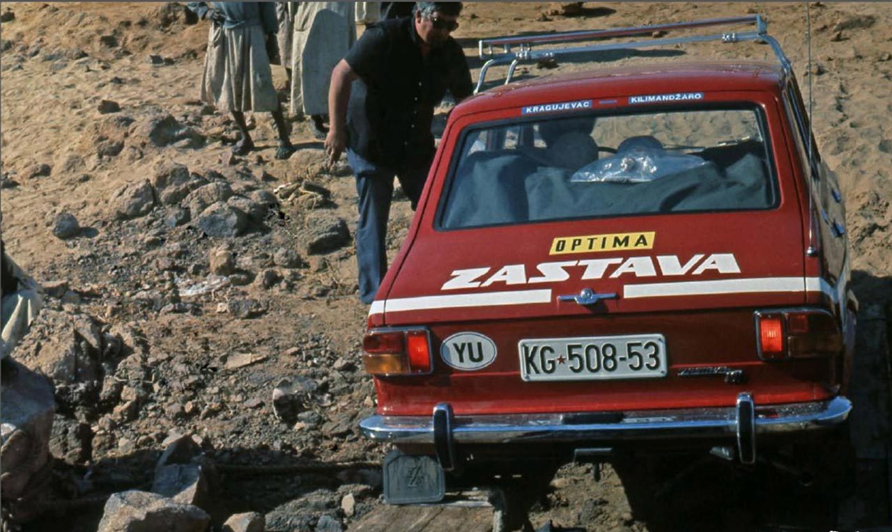 » Некаде на средината на ’70-тите години, во Zastava се раѓа луда идеја за меѓународна промоција на новиот 101 и негово испитување во ненормални услови – да се отиде до срцето на Африка, до Килиманџаро. Сигурни сме дека реализацијата на една ваква намера во тоа време не била ниту лесна ниту едноставна, но ќе го скокнеме тој од приказната и ќе ја започнеме со симнувањето на 5-те нови автомобили од фабричката лента, сосема сериски, наменети за извоз во Франција. На нив се интервенира минимално – се додава маслен предфилтер за воздух, минимално се засилува предното ослонување и се менуваат навлаките на седиштата со посоодветни за врелото африканско сонце.