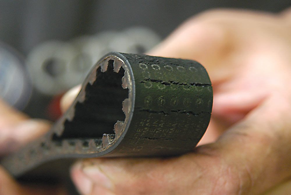 » Кинењето на запчестиот каиш кое предизвикува хаварија на моторот не се случува одеднаш бидејќи претходно се појавуваат пукнатини и оштетувања, односно замастување на каишот, што треба да се открие навреме. На голем дел возачи им е познато дека во случај запчестиот каиш да пукне доаѓа до големи оштетувања на моторот бидејќи клиповите и вентилите ќе се судрат. Тогаш доаѓа до деформација на вентилите, оштетувања на водилките и клиповите, а во потежок случај и на брегастата оска и главата на моторот. Заради тоа секој производител пропишува интервал кога запчестиот каиш треба да се замени, кој знае да биде и повеќе од 100.000 km, со негови редовни контроли на одредени периоди. Но без разлика на тоа запчестиот каиш треба да се проверува на секој голем сервис, бидејќи пред неговото кинење по правило се јавуваат пукнатини. Проблем може да биде и замастувањето предизвикано од пропуштањето на масло од заптивките на коленестото вратило или брегастите оски. Тогаш се намалува корисното триење меѓу запчестиот каиш и ремениците и може да дојде до прескокнување на каишот кое исто така предизвикува судирање на клиповите и вентилите и хаварија на моторот.