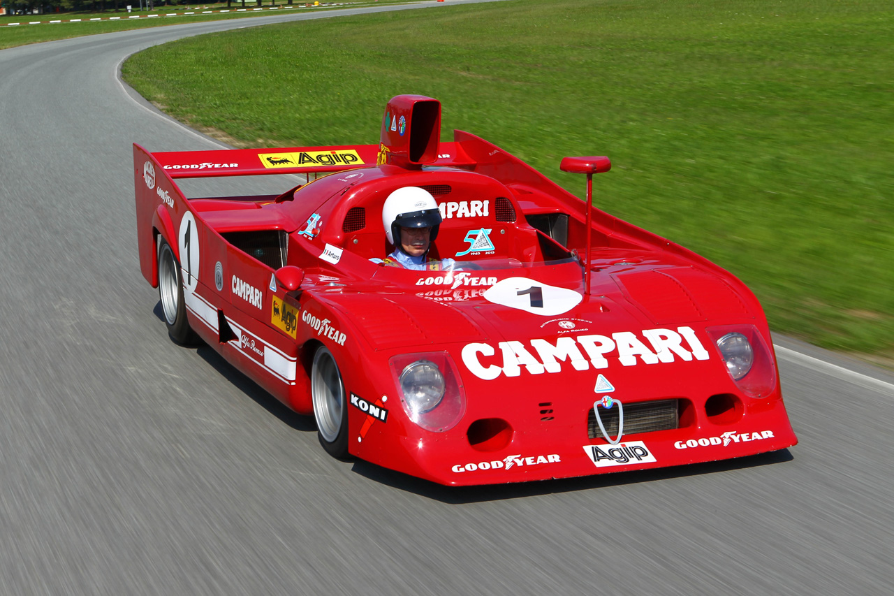 » Покажувајќи ги уште на почетоците своите амбиции да ги освои светските тркачки патеки, Аlfa Romeo постојано го усовршуваше легендарниот Tipo 33. Со текот на годините победите се редеа, секоја наредна поимпресивна од претходната, за во 1975 година да биде освоена првата светска шампионска титула. Својот сон италијанските инженери го постигнаа со петтата итерација на моделот означена како 33 T12. Карактеристика на овој болид тежок 670 kg беше цевкастата шасија, Telaio Tubolare на италијански, од каде е и кратенката во ознаката. Трилитарскиот V12 мотор со агол меѓу цилиндрите од 180° способен да развие 500 KS при 11.500 вртежи во минута го дотеруваше до 330 km/h. Доминацијата беше апсолутна – во рацете на извонредните возачи победи на седум од осумте трки колку што се бодуваа за шампионатот.