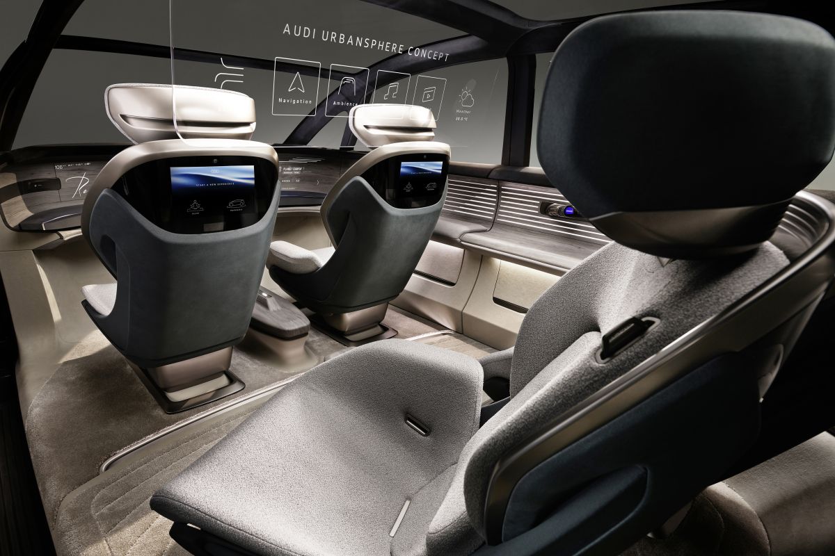» Замислен за Кина со акцент на желбите на тамошните купувачи и сообраќајните гужви во урбаниот превоз, Audi Urbansphere концептот уште малку па ќе делува нестварно. Но, само ако се гледа одвнатре – однадвор тој е голем моноволуменец кој не се истакнува со дизајнот, но стилските детали од него ќе се најдат на идните сериски модели. Технологиите се интелигентно ускладени со намената на возилото, со цел на патниците да им се понуди целосно ново ниво на уживање во возењето. А тоа ќе биде автономно, со предни седишта свртени наназад или пак проѕирен екран меѓу двата реда седишта за патниците назад.