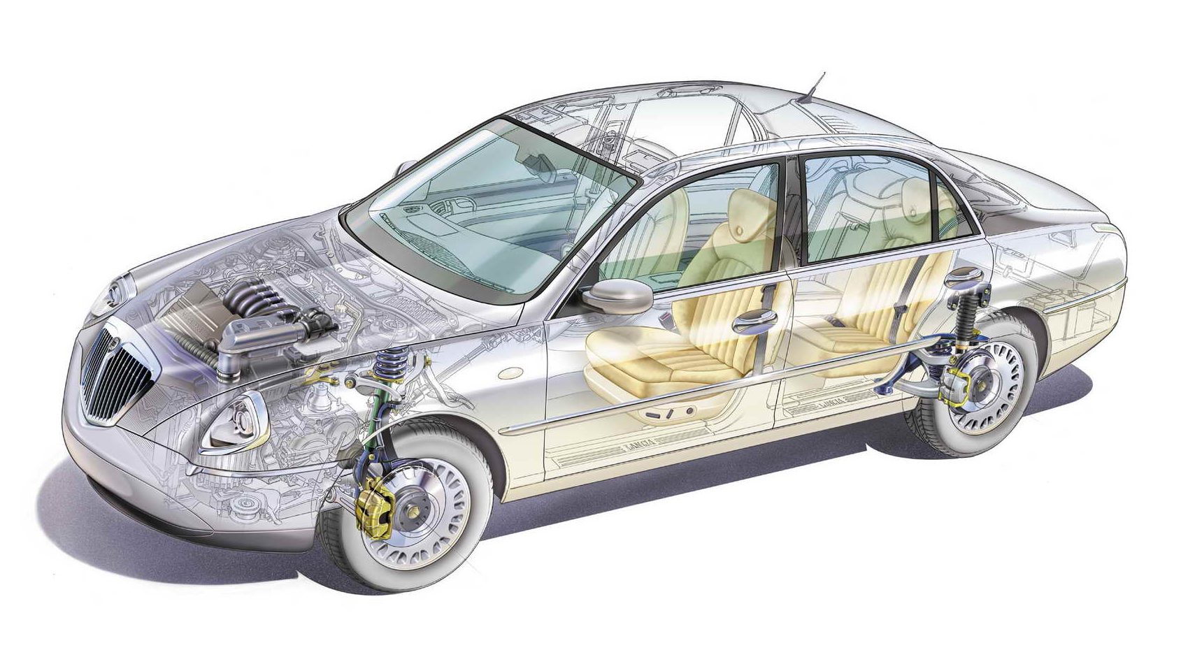 » Некои автомобили и денес фасцинираат заради изгледот, некои заради својата напредност. Во свое време Lancia Thesis предизвикуваше внимание во сите аспекти. Смелиот дизајн го презеде од концептот Dialogos претставен 1998 година на салонот на автомобилите во Торино. Серискиот модел премиерата ја имаше во Женева во март 2001-вата, ентериерот беше покажан подоцна, на салонот во Франкфурт, а продажбата започна идната година. Беше достапна со атмосферски и турбо мотори со зафатнина меѓу 2,0 и 3.2 литри, петцилидрични или V6. Престижната лимузина долга 4.888 и широка 1.830 mm забележа солиден ефект на пазарите ширум Европа. Колку беше напредна кажува и тоа дека во она време имаше 7-инчен дисплеј.
