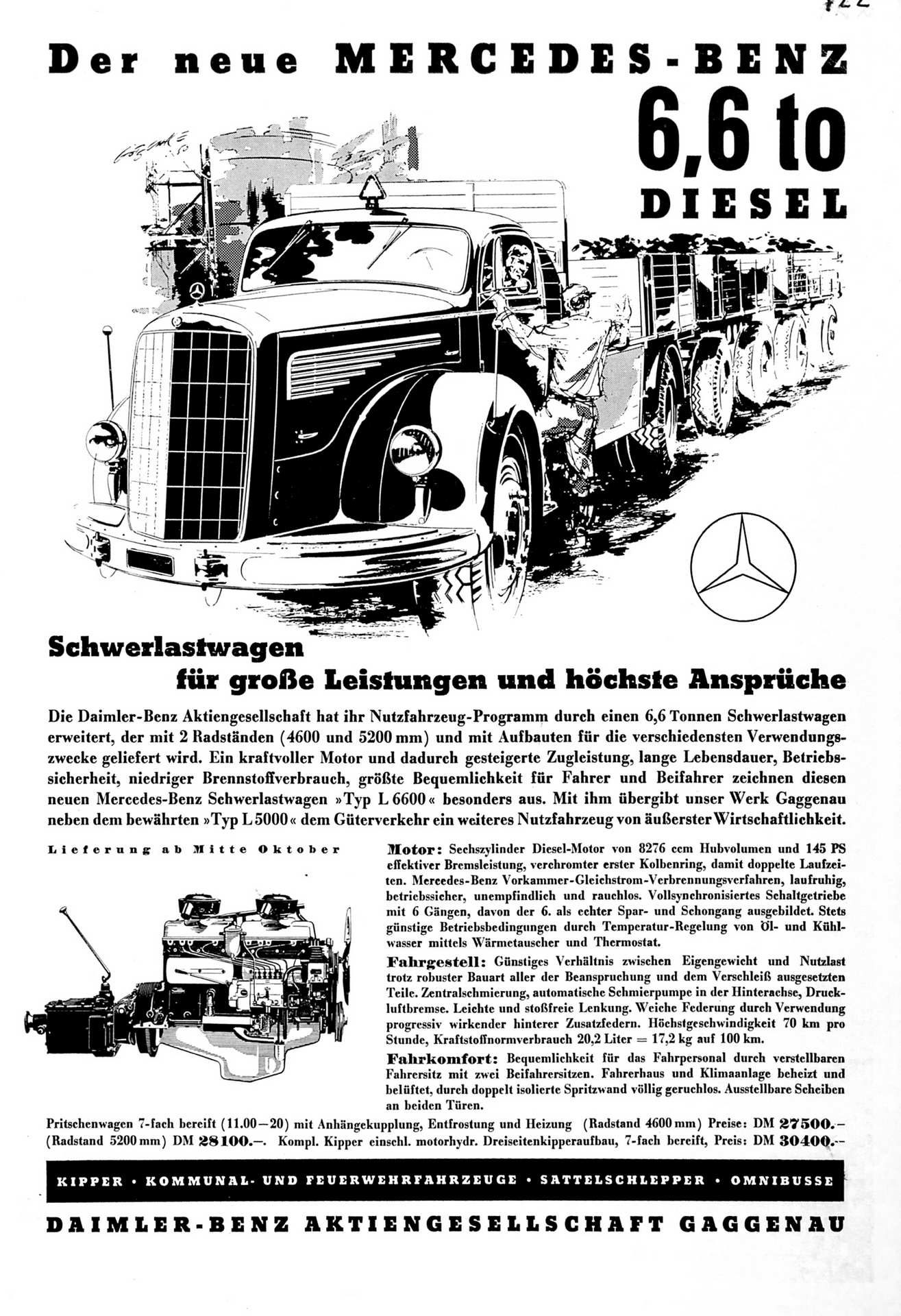 Ваквите карактеристики го направија моторот на L 6600 доста успешен, одржувајќи го во живот дури до 1979 година. Паралелно се развиваше и прошируваше и гамата камиони чија моќност (со друг мотор додуша) порасна на 200 коњи а носивоста на 12 тони. Истовремено беше задржана и издржливоста, а понудата беше дополнета и со верзии на камионите со кабина над моторот која им обезбедуваше поголема компактност и подобри маневарски способности. Дека се нудеше во разновидни верзии со повеќе конфигурации со различни меѓуоскини растојанија вклучувајќи и изведби со погон на сите тркала, не треба да се споменува. Накратко кажано, оваа генерација камиони одиграа важна улога во еволуцијата на германската индустрија на комерцијални возила.