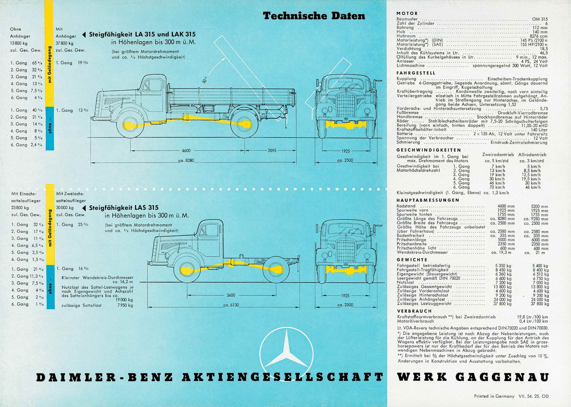 L 6600 кој од 1954 година ја носеше ознаката L 315 беше камион со дозволена носивост од 6,6 тони. Со својот долг нос на прв поглед многу потсетуваше на моделите пред него со корени од пред втората светска војна, но сепак располагаше со нови технологии кои во меѓувреме доста се развија, посебно моторите. Располагаше со лесен и брз дизел мотор со поголема моќност и помала потрошувачка, кој од своите 8,3 литри испорачуваше 145 KS при 2.100 вртежи во минута и му овозможуваше максимална брзина од 70 km/h и потрошувачка од 24 литри гориво на 100 километри. За споредба, неговиот претходник од 11,2 литри развиваше 150 KS при 1.700 вртежи во минута, а камионот опремен со него развиваше 55 km/h и трошеше 36 литри дизел на 100 km.