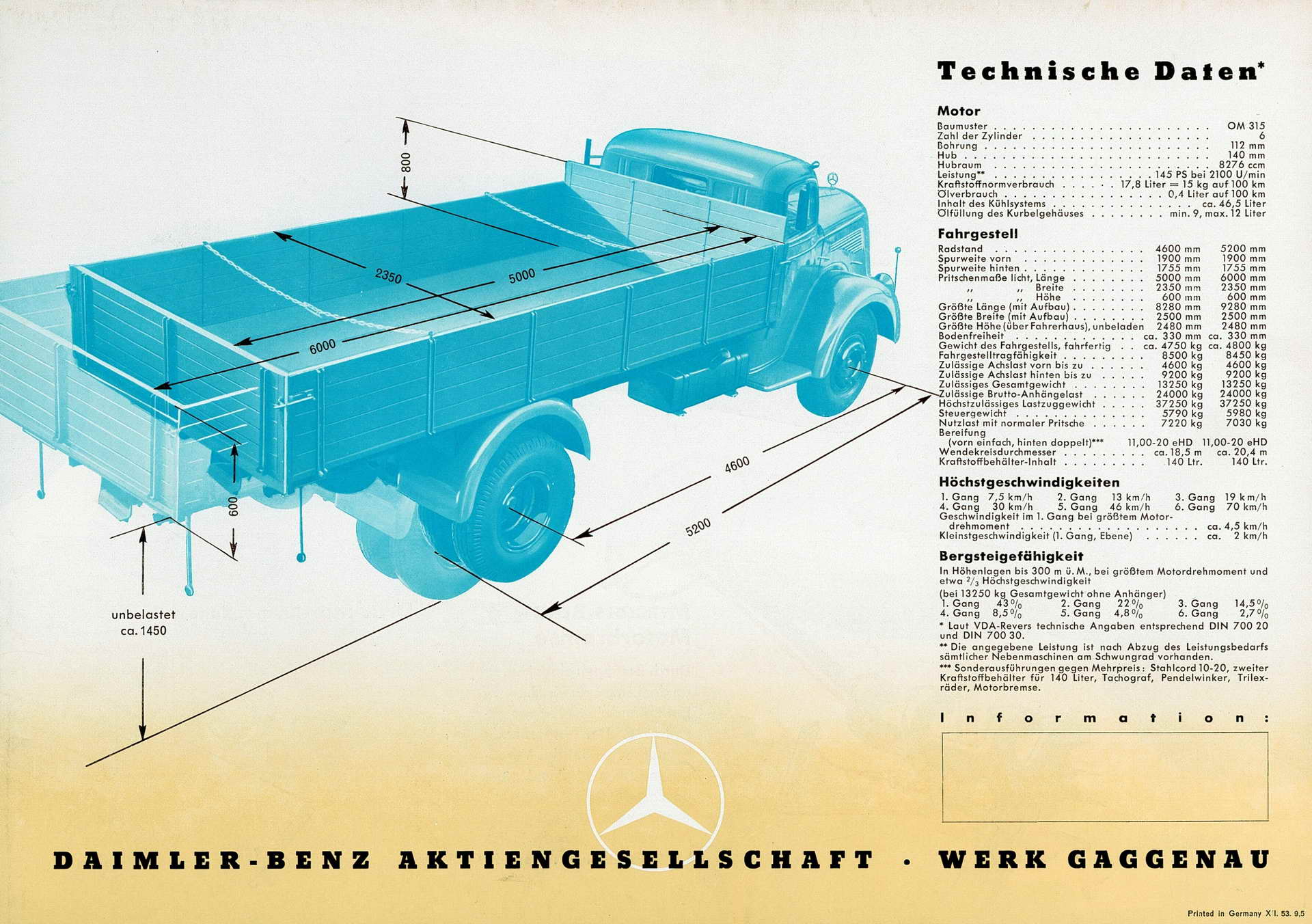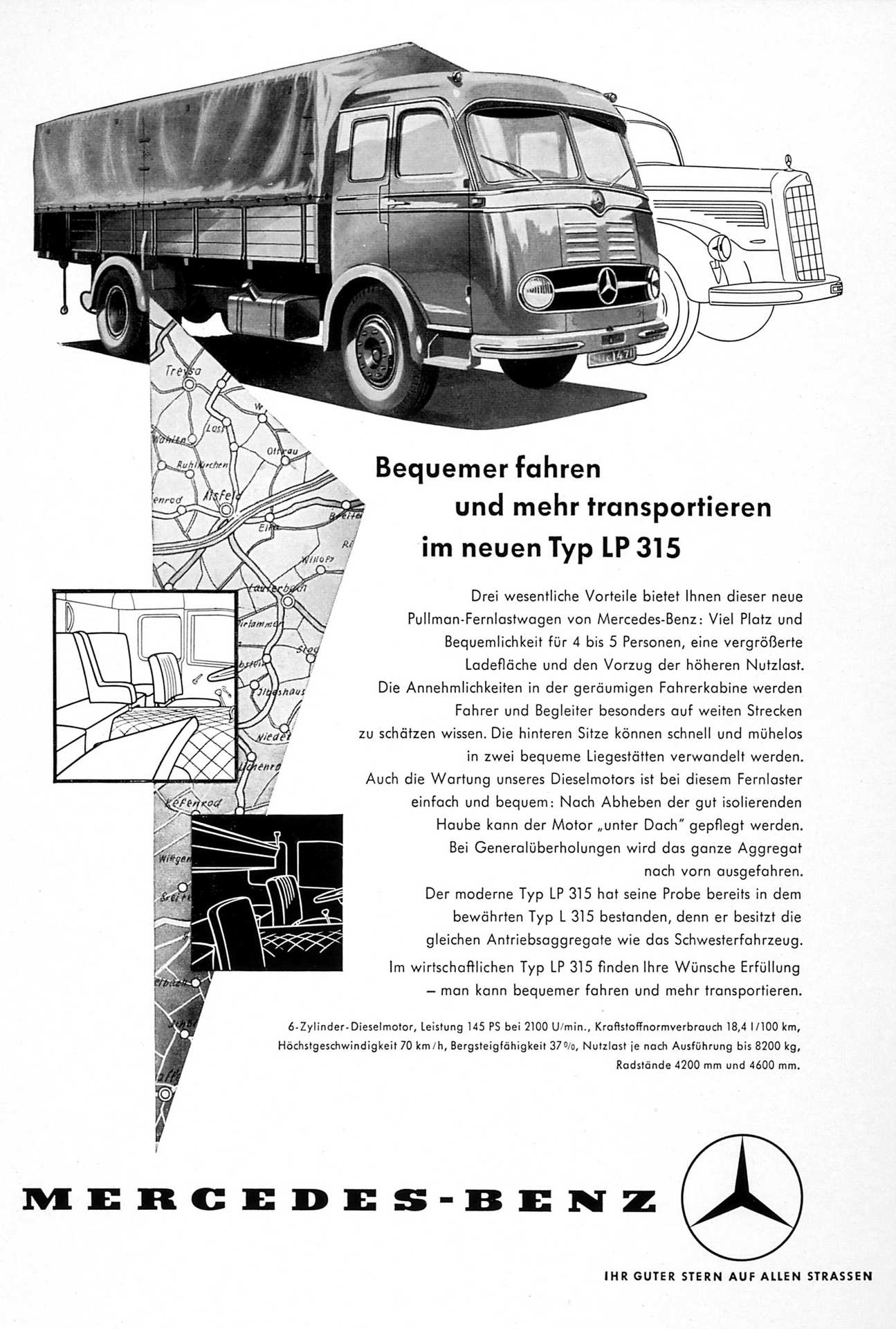 Камионот кој имаше интерна фабричка ознака 304 беше лансиран на пазарот во октомври 1950 година, а автобусот следеше само месец дена покасно. И двете возила, но посебно камионот беа конструирани да бидат робусни и пристапни со добар сооднос на тежината и корисната носивост, како и да бидат едноставни и евтини за одржување. Притоа посебно беше посветено внимание на можноста резервните делови брзо да се доставуваат до сервисите. Сето тоа беше дополнето со добро формирана сервисна мрежа што овој пристап го направи извонредно успешен. Така до 1956 година комерцијалните возила веќе генерираа повеќе од половина од продажбата на Daimler-Benz.