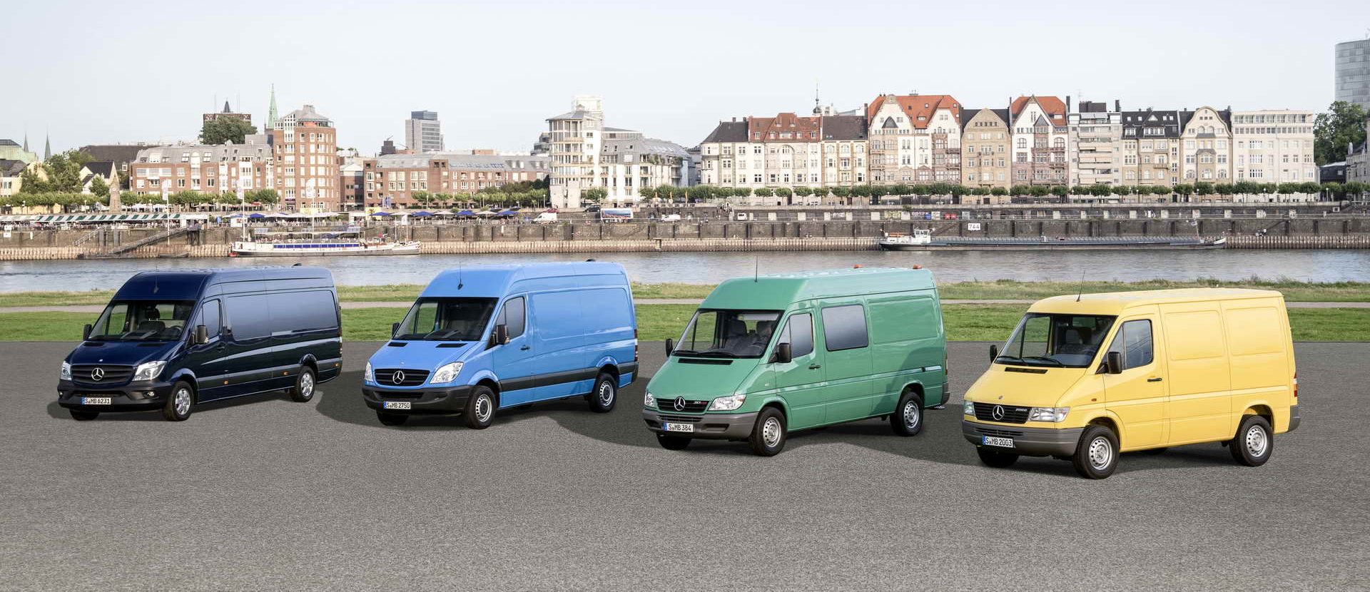 » Инженерите на Mercedes во 1995 година беа ставени на голем испит. Потврдените вредности – квалитетот, издржливоста и економичноста на легендарниот T1 кој се произведуваше од 1977-мата, не беше лесно да се надградат. Сепак успеаја – беше лансиран комби кој набргу стана мерило за успешноста во бизнисот. Оттогаш Sprinter со секоја своја генерација го дефинира овој сегмент на комерцијални возила. На пазарот беше дочекан како ултрамодерен комби подготвен за сите логистички предизвици. Имаше аеродинамична форма, диск сопирачки на сите тркала со ABS, а подоцна и автоматска блокада на диференцијалот. Од почетокот беше позициониран како вистински мулти-талент, достапен во сите можни верзии – комби, минибус со низок или висок покрив, шасија со обична или двојна кабина, камионче, кипер… Меѓуоскиното растојание му се движеше од 3.000 до 4.025 милиметри, а дозволената бруто тежина беше 2.590, 2.800 или 3.500 килограми. Се докажа и меѓу камперите кои во него видоа оптимална основа за своите преработки. Покрај во Германија, првата генерација на Sprinter се произведуваше и во САД (каде се продаваше под ознаките на Freightliner и Dodge), Аргентина, Иран, Виетнам, Кина, Русија, Египет… Го произведуваше и Volkswagen кој го пласираше на пазарот под ознаката LT.