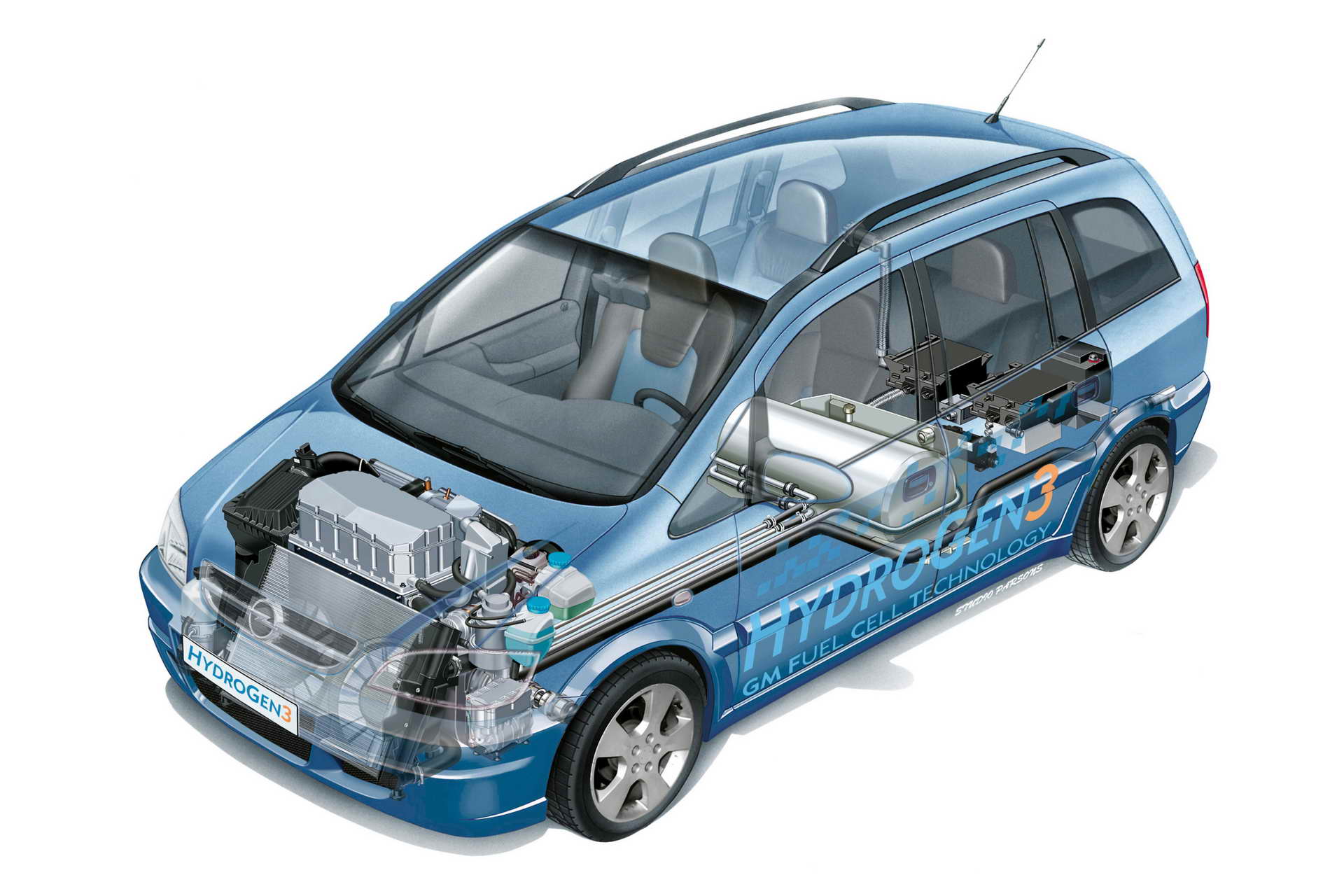 Длабок исчекор во алтернативната иднина беше направен 2000-тата кога на улиците излезе Zafira HydroGen1 чии водородни горивни ќелии го напојуваа со струја електромоторот од 75 KS. Во текот пак на идната година од страна на купувачите беше тестирана флота од 20 возила HydroGen3 чија сила зголемена на 82 KS пружаше максимална брзина од 160 km/h. Во 2004-тата беше организиран маратон на кој две вакви возила поминаа 10.000 километри низ Европа возејќи од Норвешка до Португалија. Наредниот HydroGen4 имаше горивни ќелии од 128 KS кои без емисии на штетни гасови со реакција на водородот со кислородот од воздухот произведуваа струја за електромоторот од 100 KS. Погодноста за секојдневна употреба ја докажуваа во заеднички проект спонзориран од федералното министерство за сообраќај.