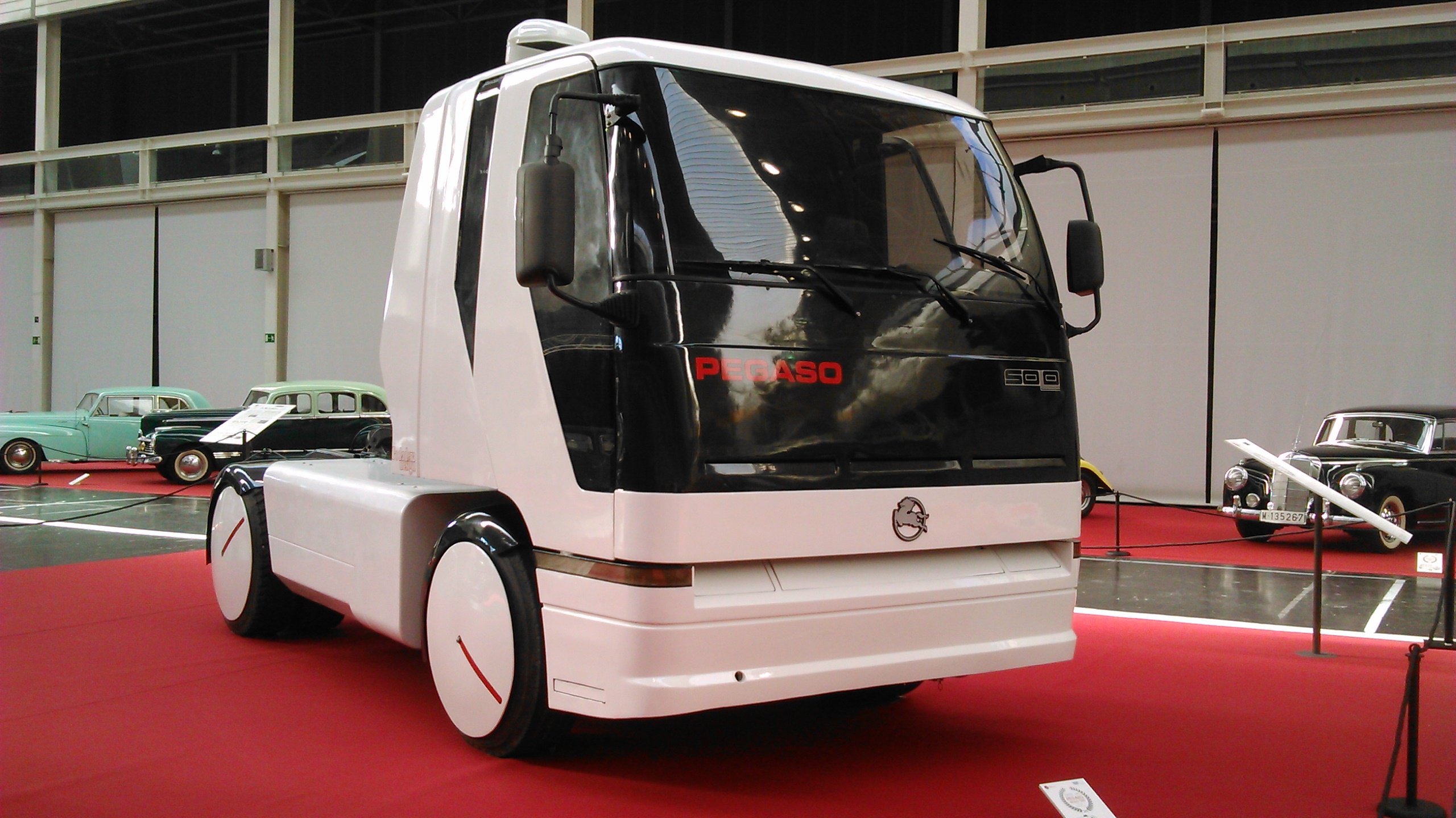 » Настаната на темелите на Hispano Suiza, историската шпанска марка Pegaso продолжи да го шири наследството на славното име пренесувајќи ги страста, пионерскиот дух и моќта во светот на комерцијалните возила. Првите камиони наследија доста од моделите на Hispano Suiza, вклучувајќи ги и рамната и модерна кабина и бензинскиот мотор. Напредокот бргу ги опреми со дизел мотори, но Pegaso не запре тука – пионерскиот дух на марката дојде до израз уште во 1952 година кога беше направен прототип на електричен камион. Неговите батерии се полнеа 5 часа и имаа капацитет за 75 km, но за жал не влезе во производство. Затоа пак послужи како основа за развој на тролејбуси. За да го зголеми својот имиџ, Pegaso едно кратко време тогаш произведуваше и спортски автомобили. Марката остави и голема трага во историјата кога во 1989-тата како прв производител во европската индустрија претстави концептен камион. Но веќе наредната година компанијата потпадна под капата на Iveco, по што еден по еден моделите на марката исчезнуваа од пазарот – последниот камион Pegaso беше произведен 1994 година.