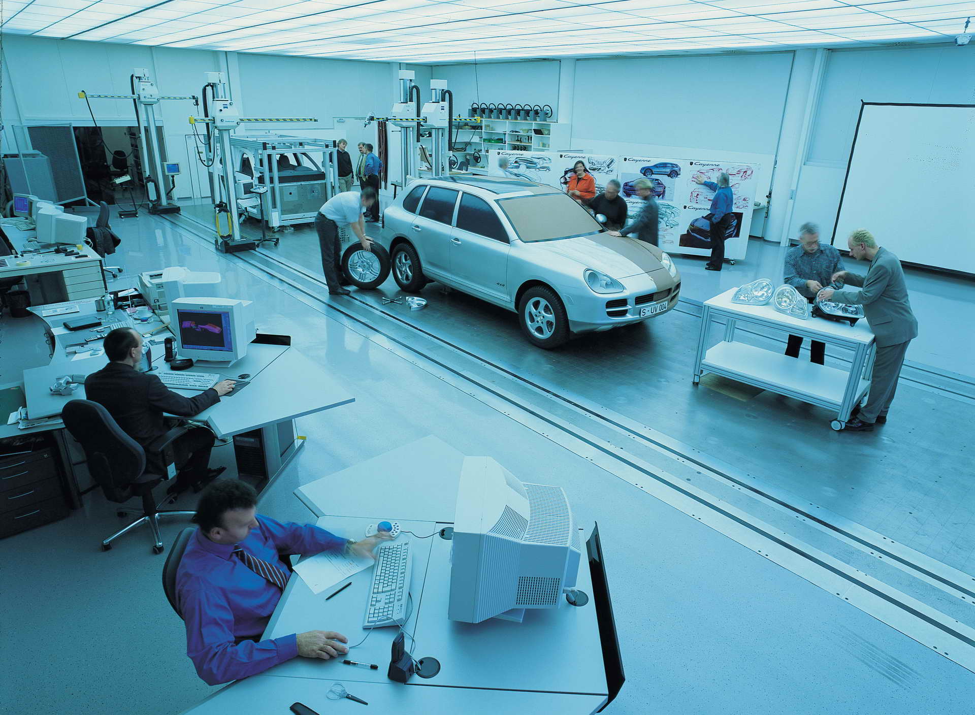 » Уште од првиот момент кога се појави, Cayenne беше атракција. Ја заживеа марката, донесе многу нови купувачи и доведе до глобален успех. Porsche на средината на 1990-тите мораше да донесе некои важни одлуки за да ја осигура својата долгорочна економска стабилност. На почетокот на деценијата компанијата се најде во една од најдлабоките кризи во својата историја – со испорака од само 23.060 автомобили во финансиската 1991/92 година беше во дебел минус. Boxster лансиран 1996-тата започна да ја извлекува, но на раководството му беше јасно дека спортските автомобили си имаат свои пазарни лимити и нема да можат да ја осигурат иднината. Започнаа да се кројат планови за трет модел, на почетокот без цврста одлука од кој сегмент.