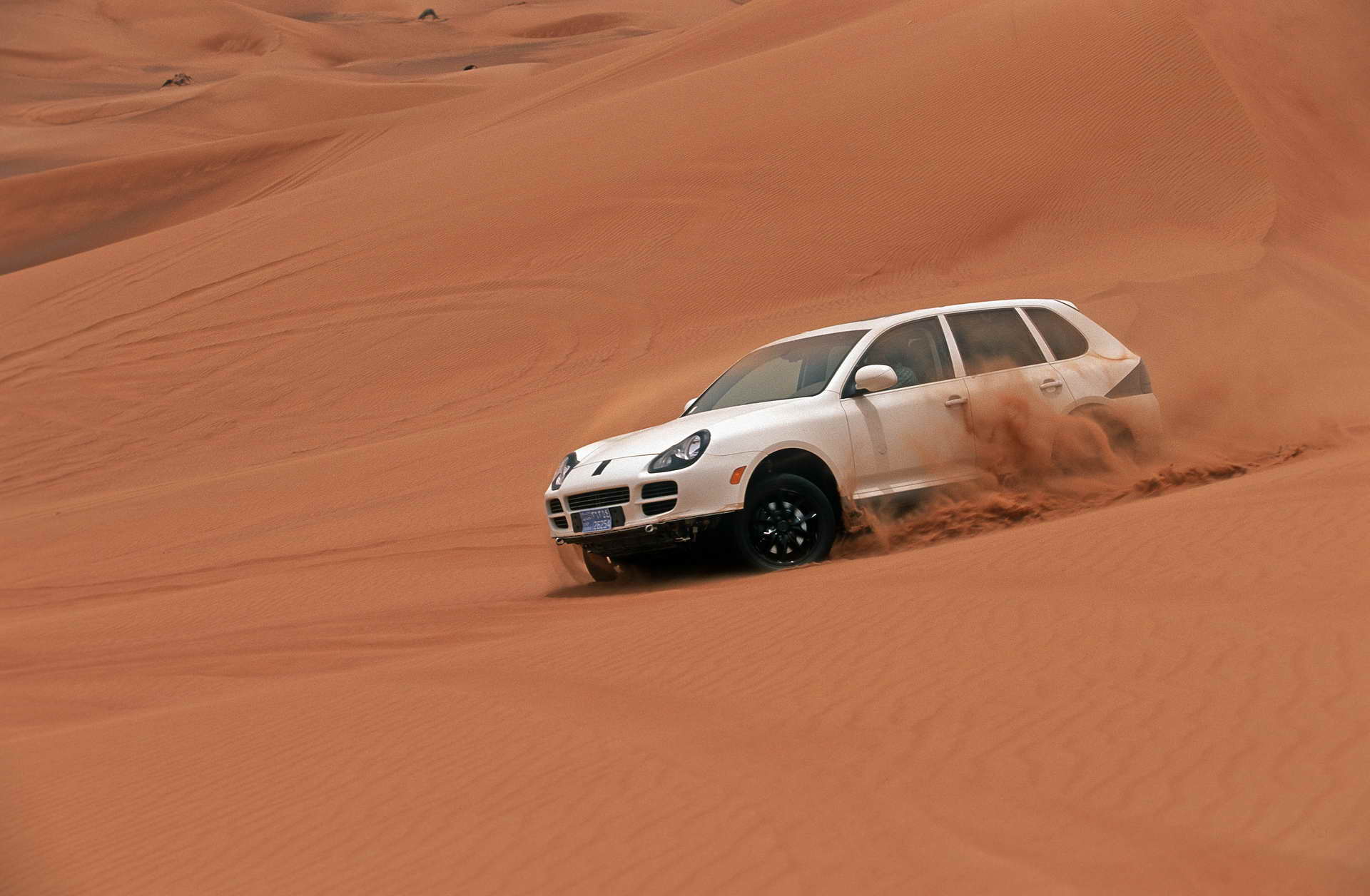 Широките технички можности овозможија Cayenne во исто време да биде семејно возило, робусен теренец и доста динамичен спортски автомобил со типични Porsche гени. Со овие свои карактеристики тој многу влијаеше во обликувањето на сегментот. Прва генерација стартуваше како што може да се очекува од Porsche, со избор од два V8 мотора – новоразвиениот 4,5 литарски агрегат генерираше 340 односно 450 KS во турбо верзијата со кои се постигнува 242 односно 266 km/h. Динамиката во свиоците ја решаваше новововедениот електронски систем кој стандардно ја дистрибуираше погонската сила меѓу задната и предната оска во сооднос 62:38, кој со помош на повеќеламелна спојка можеше да варира од 100:0 до 0:100 ако е потребно. Надвор од асфалтните патишта, целосно блокираниот централен диференцијал спречуваше тркалата да се вртат во празно дури и ако накратко би се подигнале од тлото.