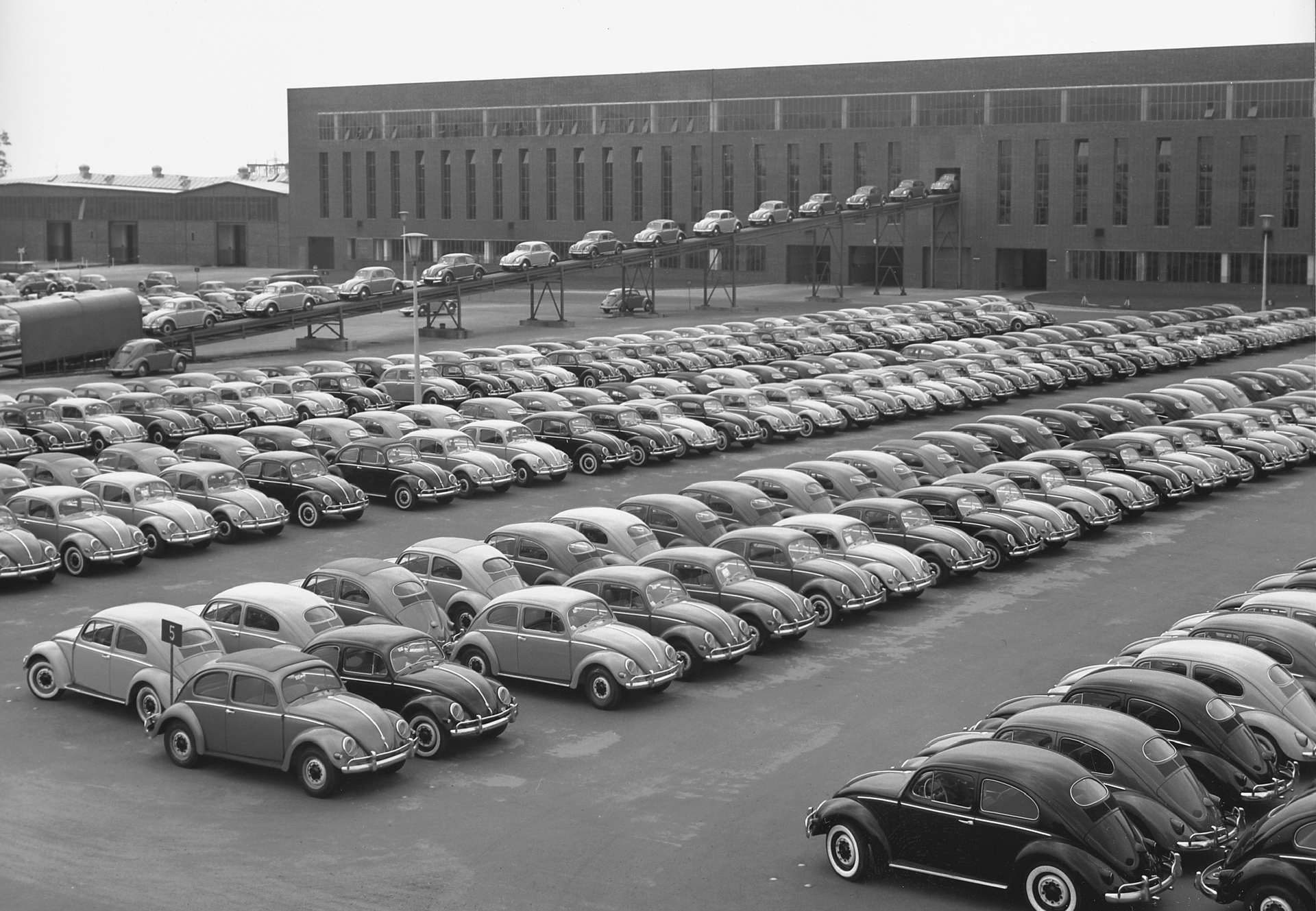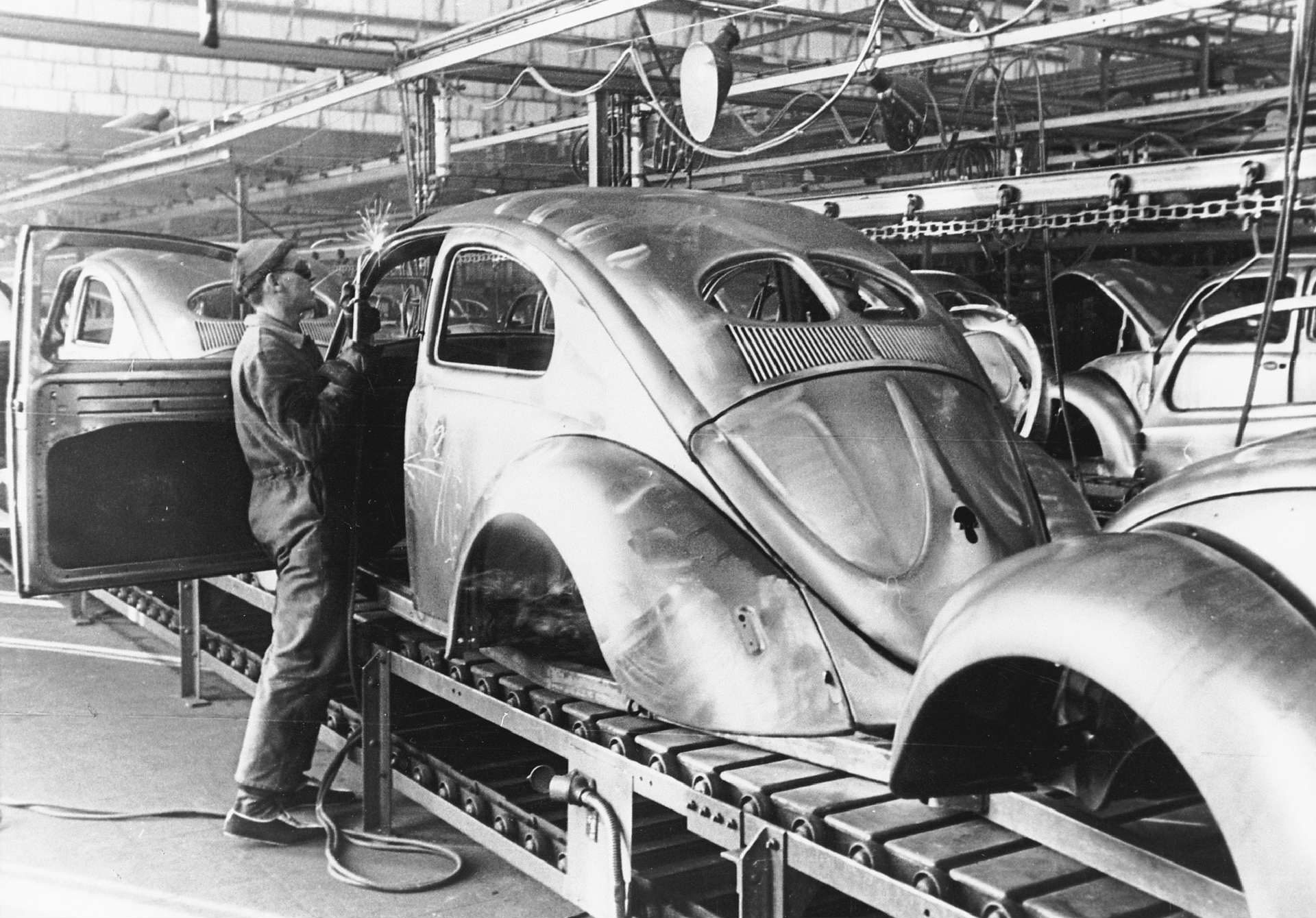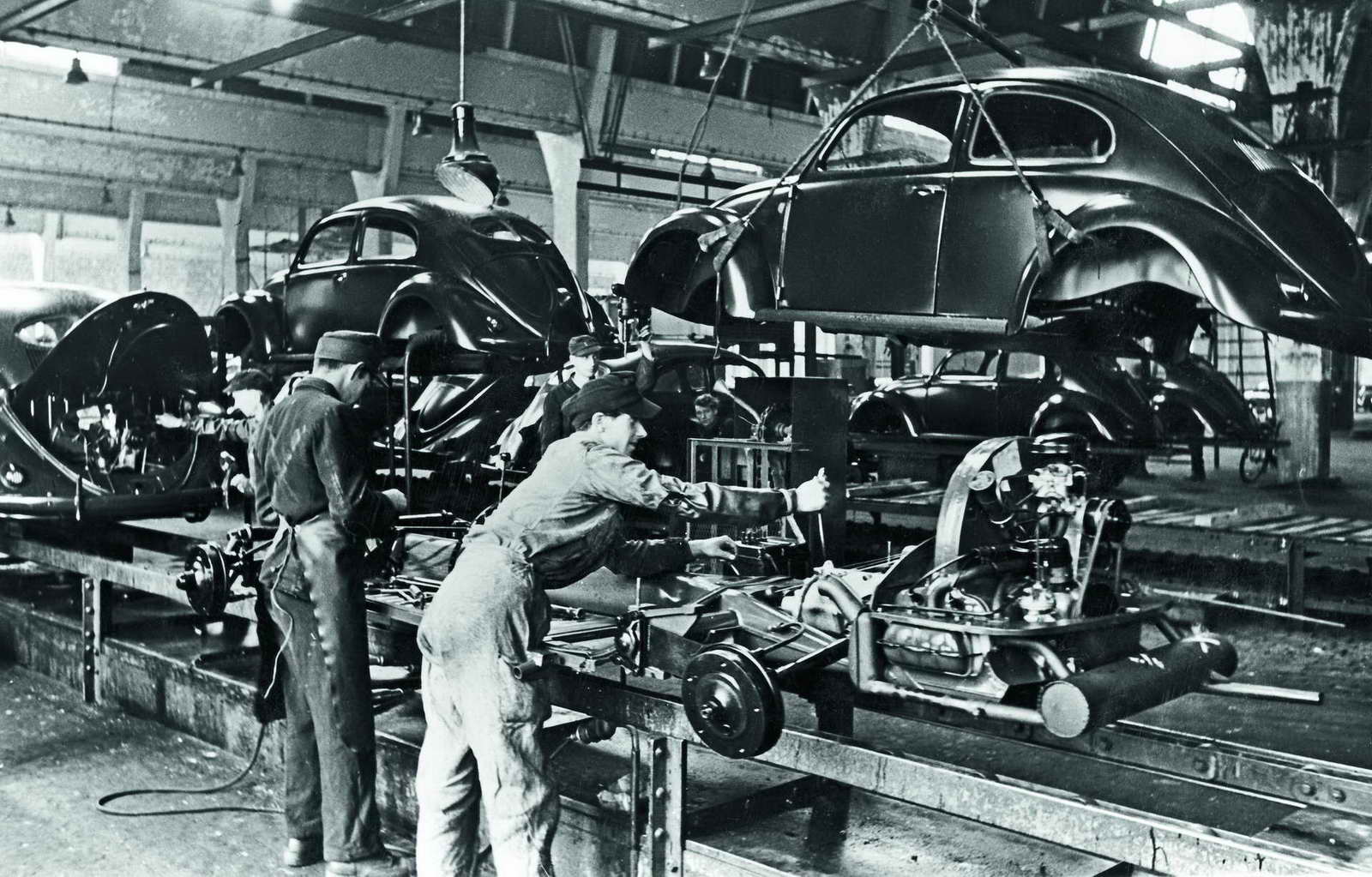 Заради својот низок приоритет фабриката на почетокот не беше цел на сојузничките бомбардери што им даде доволно време на Германците да ги релоцираат машините во подземните бункери и да ги заштитат од уништување. После војната британската окупациска управа планираше да ги пресели во Велика Британија, но оценувајќи дека се работи за застарена технологија и возила кои не би биле привлечни за просечен купувач, ниту една фирма од Островот не беше заинтересирана да ги преземе. Затоа производство на возилата беше обновено на постоечката локација, на почетокот само за потребите на војската, но веќе во 1947 година возилата сега со назив Volkswagen започнаа да се продаваат и на цивилни купувачи, а првите педесетина примероци беа извезени во Холандија.