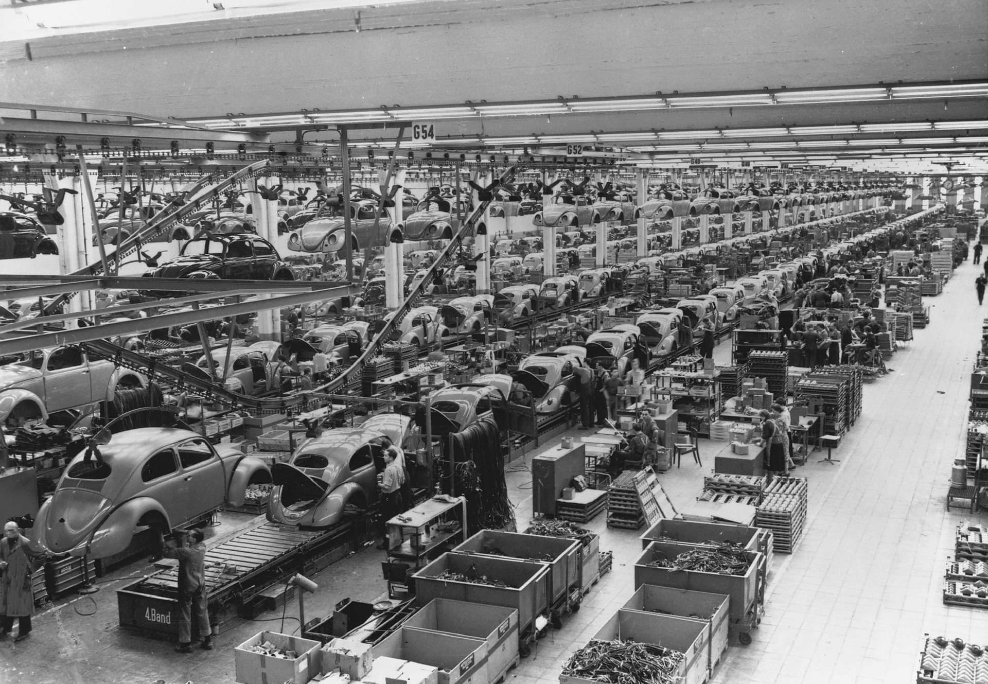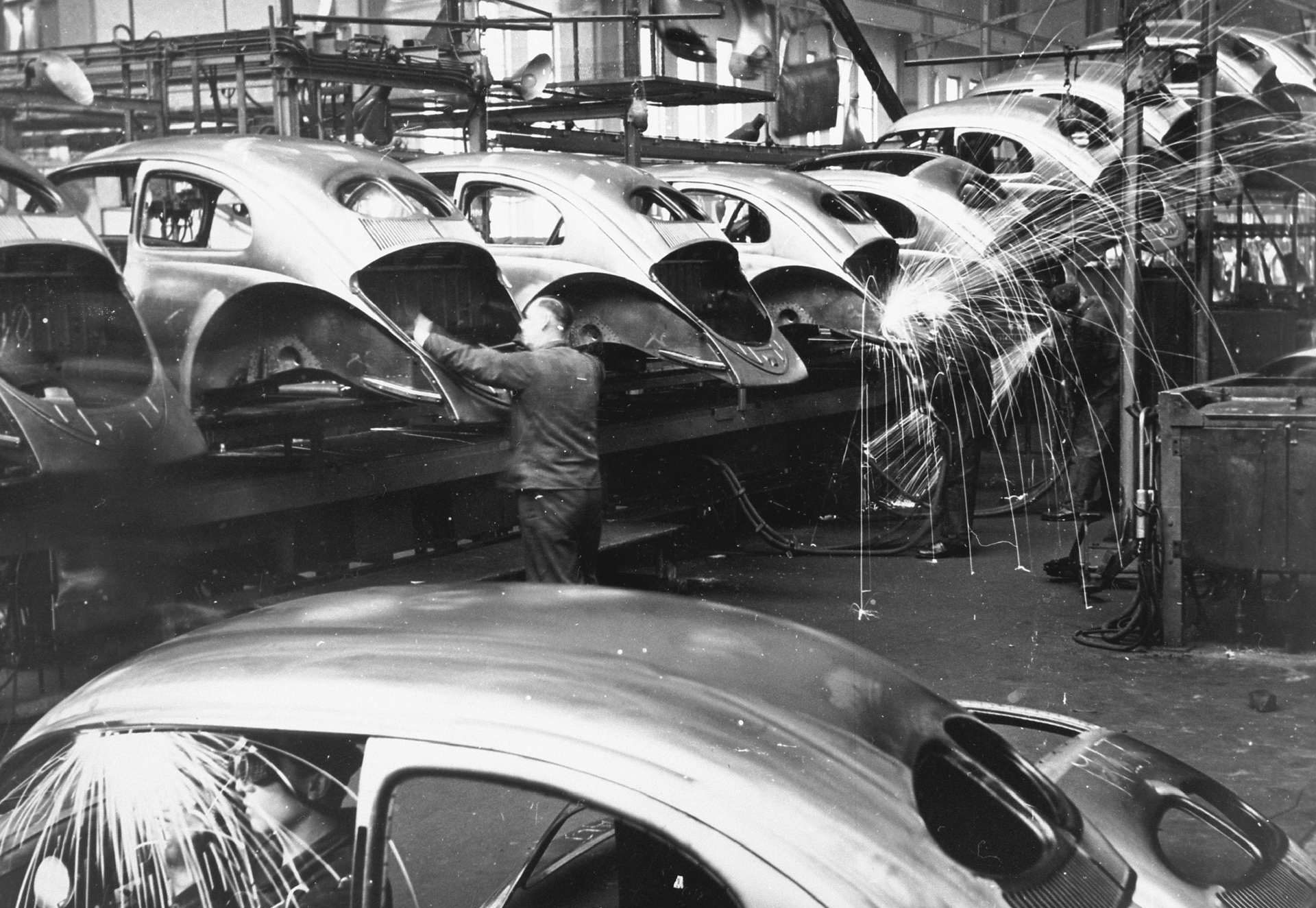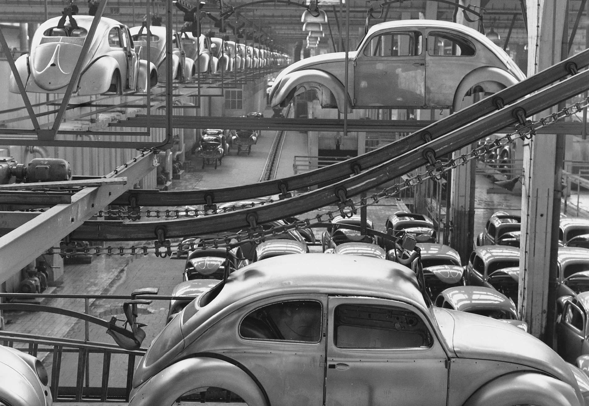 Заради својот низок приоритет фабриката на почетокот не беше цел на сојузничките бомбардери што им даде доволно време на Германците да ги релоцираат машините во подземните бункери и да ги заштитат од уништување. После војната британската окупациска управа планираше да ги пресели во Велика Британија, но оценувајќи дека се работи за застарена технологија и возила кои не би биле привлечни за просечен купувач, ниту една фирма од Островот не беше заинтересирана да ги преземе. Затоа производство на возилата беше обновено на постоечката локација, на почетокот само за потребите на војската, но веќе во 1947 година возилата сега со назив Volkswagen започнаа да се продаваат и на цивилни купувачи, а првите педесетина примероци беа извезени во Холандија.