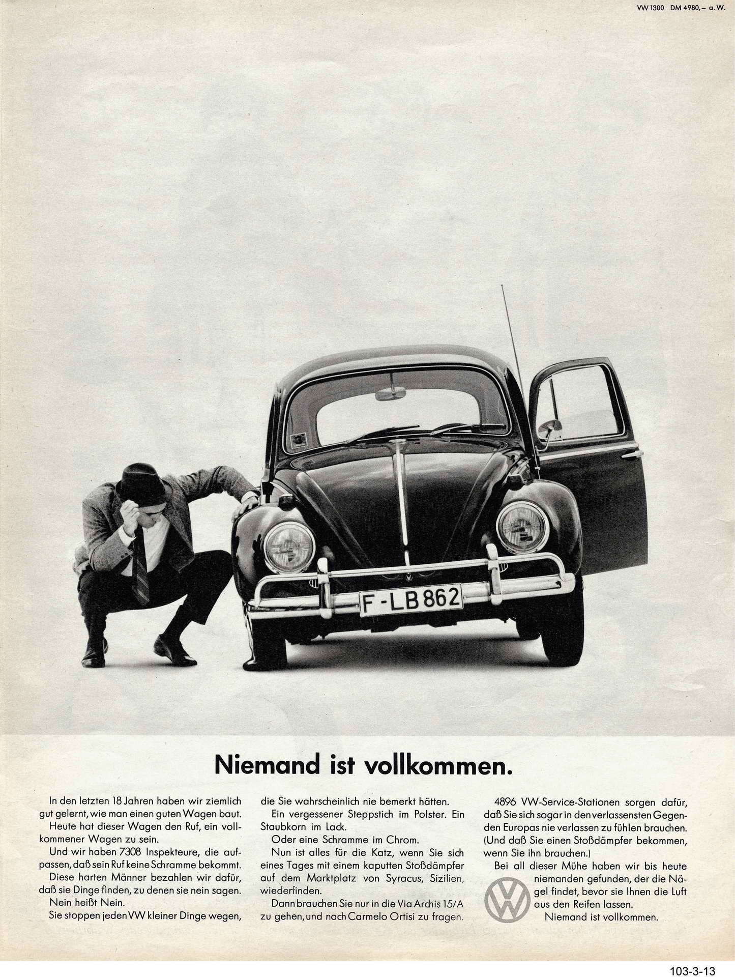 » Во 1933 година на отворањето на салонот на автомобилите во Берлин, во својот прв говор тогаш новиот канцелар им вети на Германците народен автомобил достапен за сите. Реализирањето на идејата која тој ја имаше одамна, откако кога во затвор во 1923 година ја прочитал книгата за Хенри Форд и неговата моторизација на Америка, беше поддржана со ангажман на целокупните ресурси на државата која допрва требаше да стане силна и на чиј апарат ѝ требаше моќна алатка за пропаганда. Народниот автомобил беше токму тоа, бидејќи за него беа поставени услови да може да превезе едно семејство (две возрасни лица и три деца) со брзина од 100 km/h на новите автопатишта, да не троши повеќе од 7 литри на 100 километри, да биде евтин за одржување и не поскап од 900 рајхс-марки (денешни околу 4.000 евра) колку што чинеше еден мотоцикл, или, поинаку, кажано, тогашни 30 просечни неделни плати.